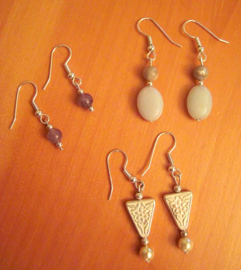 This is a pair that I made today, inspired by this pin on pinterest. The noteworthy thing about this pair is that they are my first attempt at making a wrapped loop at the top of the headpin. A little rough, but I’ve got plenty of time to practice.