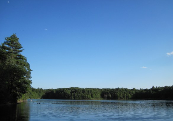 As I was driving past Concord on the way to my hotel on Tuesday night, I saw signs for Walden Pond. THE Walden Pond. You know, Henry David Thoreau’s Walden Pond, from his 1854 book Walden. I remember reading that book back in high school, over 30 years ago. It made a deep impression upon me at the time, but I haven’t thought about it again since then. Thoreau decided to live in the woods and did so for over 2 years, from 1845-1847. He later wrote the book from his notes and observations from the time he lived simply amongst nature.