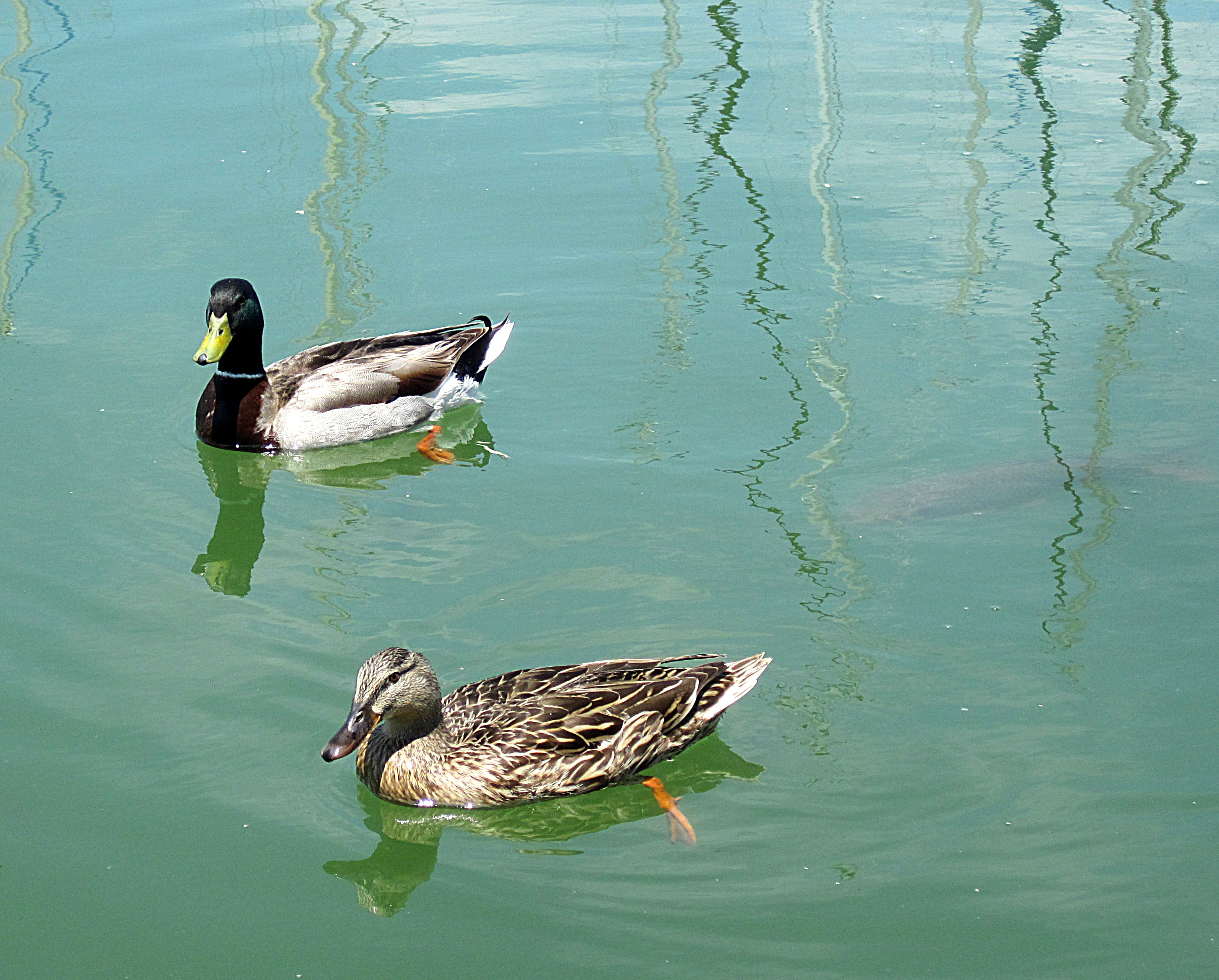 As we headed back to the marina, the two ducks that hang out in the cove were behaving very strangely. They have been in the cove everytime we have gone out there this year, and they hang out by our boat. We’ve named them George and Gracie. This time, though, as we were motoring along, they followed us well out of the cove, swimming hard to try to keep up.