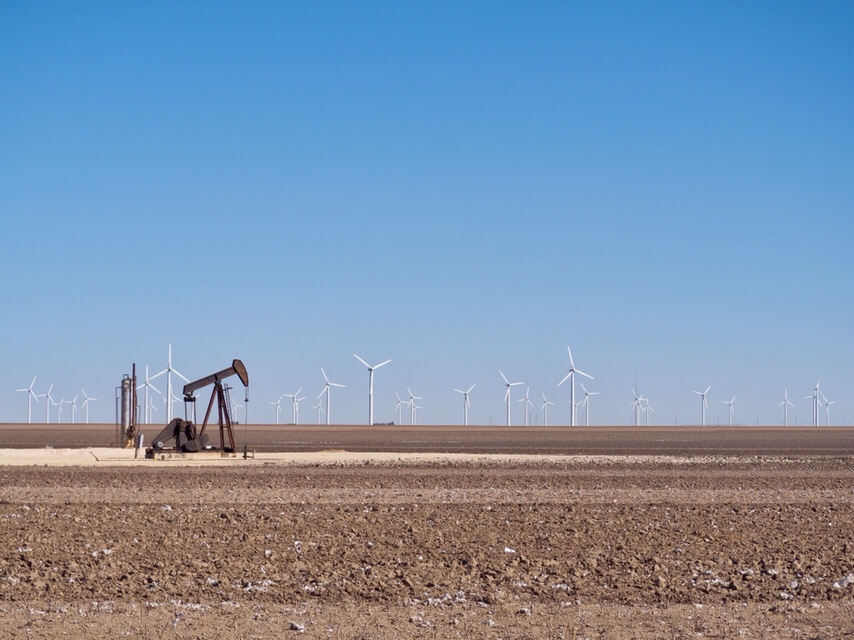 At some point I was surrounded by giant wind turbines as far as the eye could see. This picture captures the old with the new, all planted in the middle of a freshly harvested cotton field.
