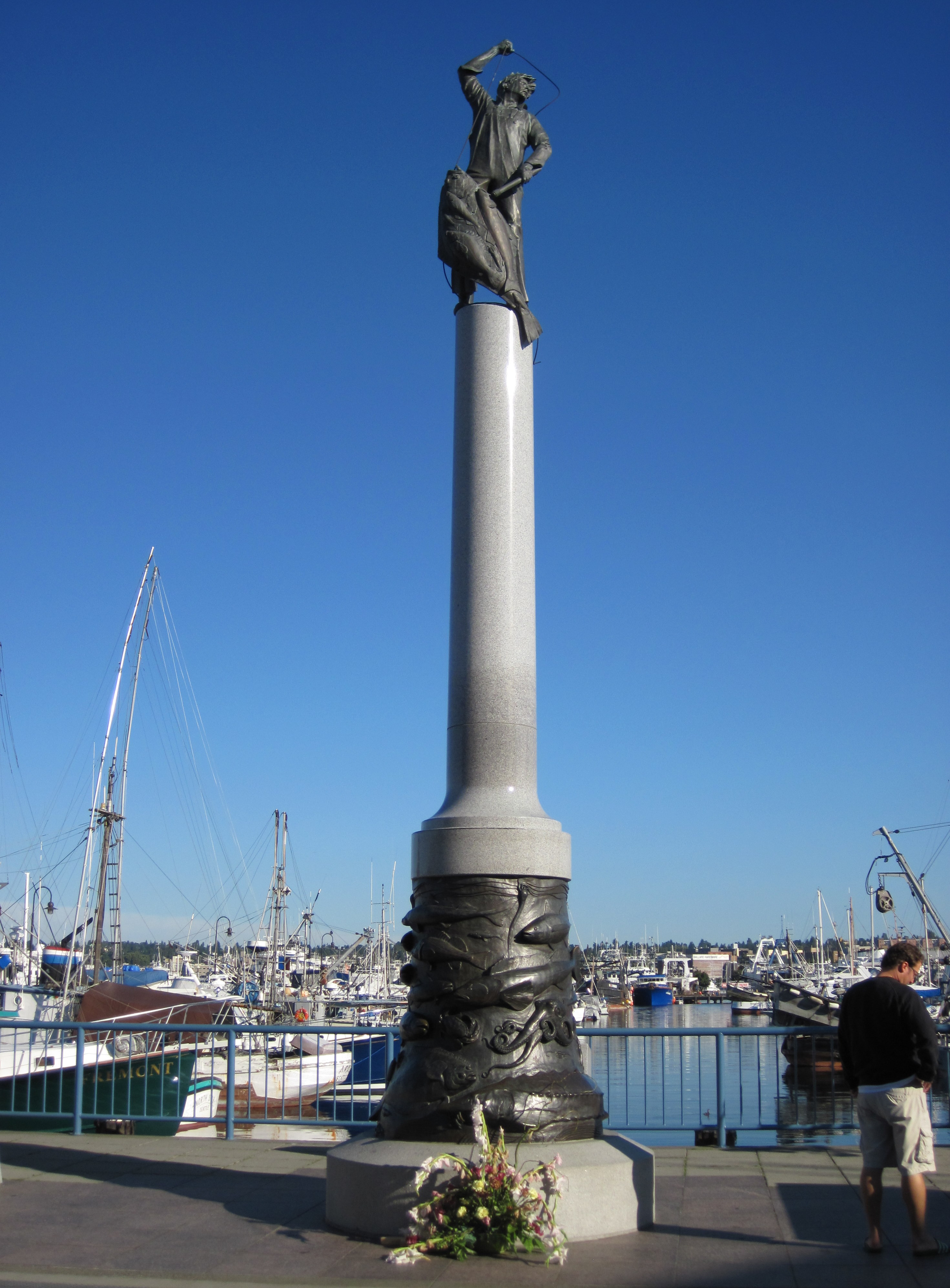 We are both up in Seattle this weekend to celebrate my mom’s 80th birthday. I flew in last night and we stayed with Patrick and Nga. This morning we went to breakfast in Ballard at the Fisherman’s Terminal. It’s a marina strictly for commercial fishing boats. This is the home of many of the crab boats on the show Deadliest Catch. Below is a shot of the memorial to fisherman lost at sea..