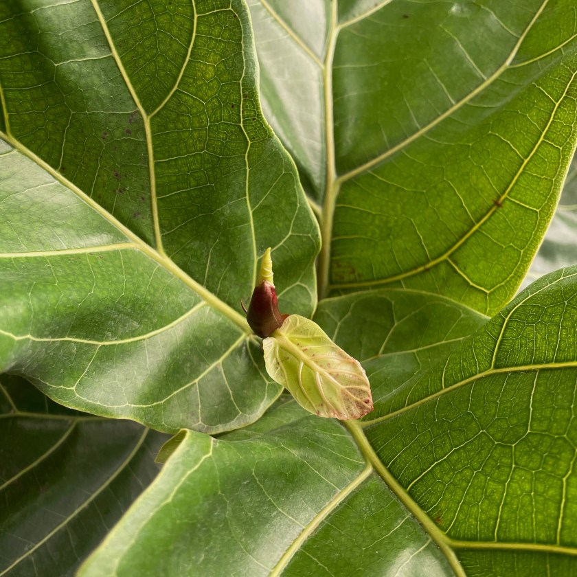 When Pat and Nga were visiting, I bought a fiddle-leaf fig plant. I asked Nga to pick it out, and she selected a good one. It’s already putting out new leaves.
