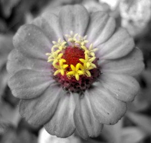 This is a shot of one of the zinnias out back. They’re so pretty!